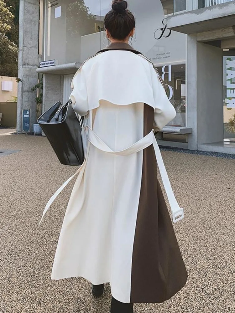 LANMREM Women Color Block Trench Coat 2024 Spring Winter Female Fashion